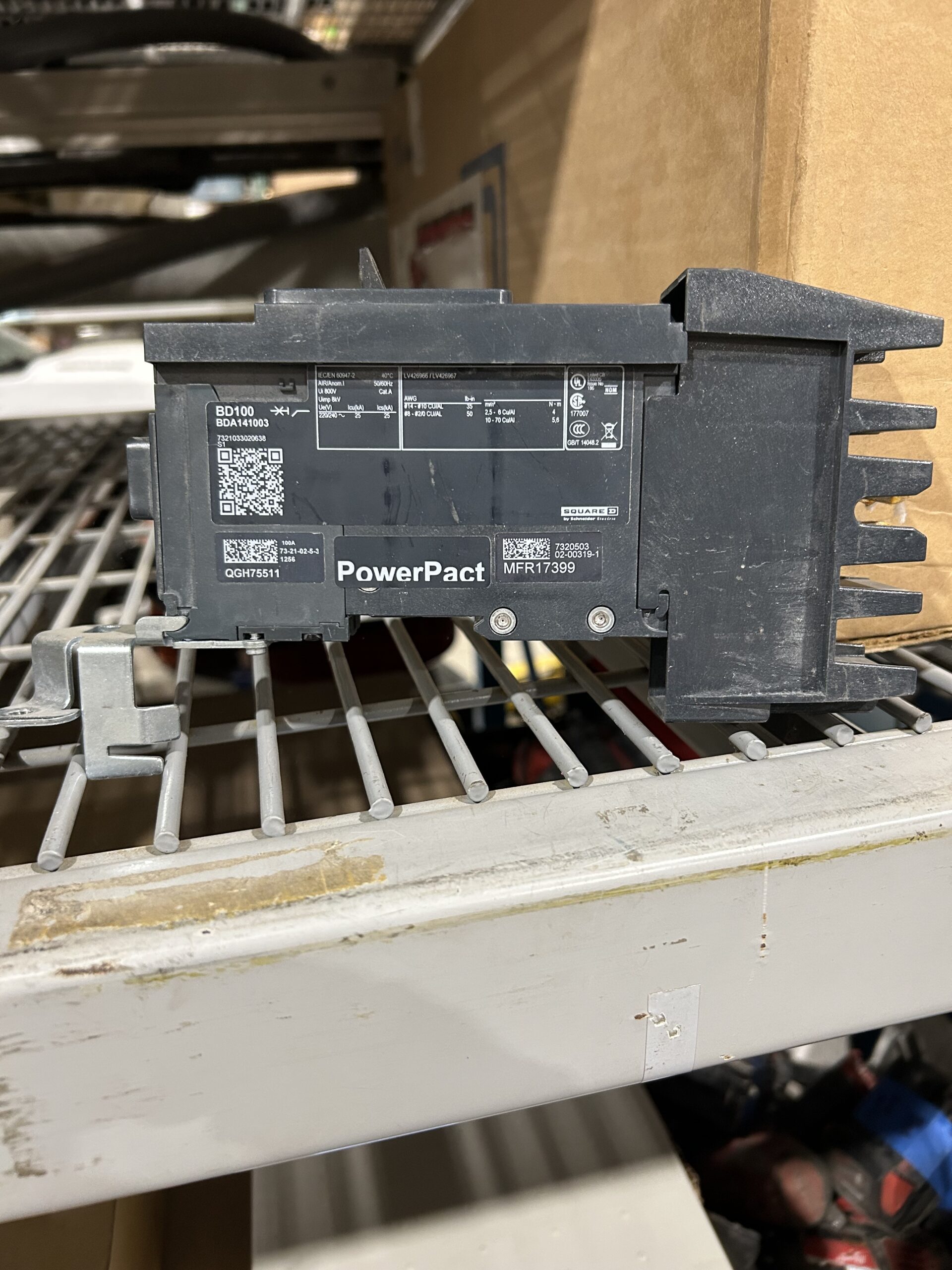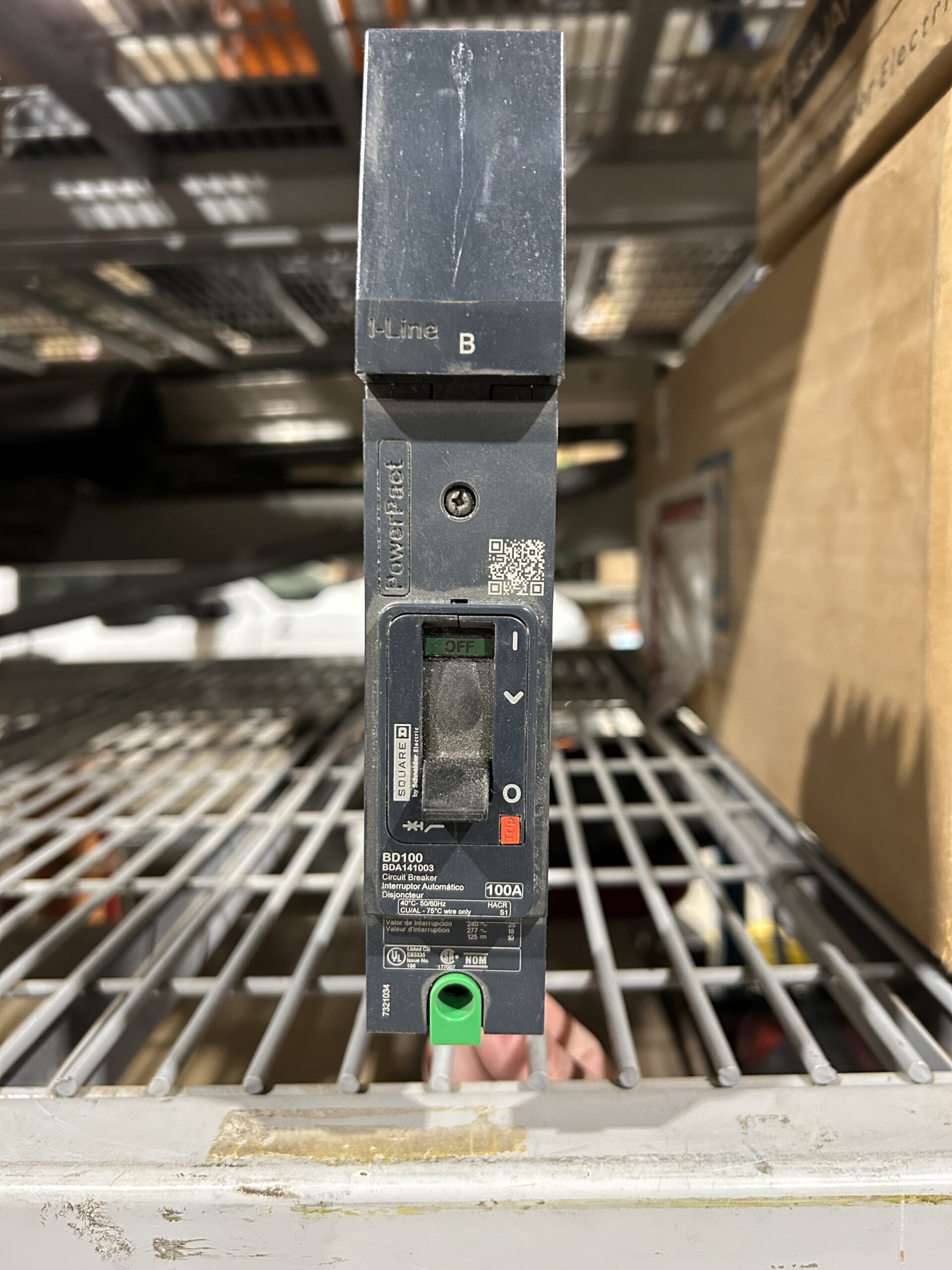 PowerPacT B-Frame brings thermal-mechanical circuit protection in a compact size and offers a wide range of accessories, auxiliaries, and connection options. This PowerPacT B-Frame circuit breaker provides thermal magnetic circuit protection with a breaking capacity of 18kA at 480Y/277VAC. All PowerPacT B-Frame circuit breakers are equipped with dual-break rotating contacts that reduce the amount of peak current during a short circuit fault. All PowerPacT circuit breakers have an integral push-to-trip button in the cover to manually trip the circuit breaker. PowerPacT B-Frame circuit breakers come in 1 to 4-pole unit mount construction and in 1 to 3-pole I-Line construction. I-Line circuit breakers come with a shrouded I-Line plug on jaw. This unit has I-Line terminations on the line side and mechanical lugs on the load side. This PowerPacT B, 100A, 1 pole, circuit breaker has a breaking capacity of 18kA at 480Y/277VAC. This circuit breaker has a continuous current rating of 80% with a B phase connection. PowerPacT B circuit breakers comply to UL, CSA, NOM, and IEC standards and are CE marked
